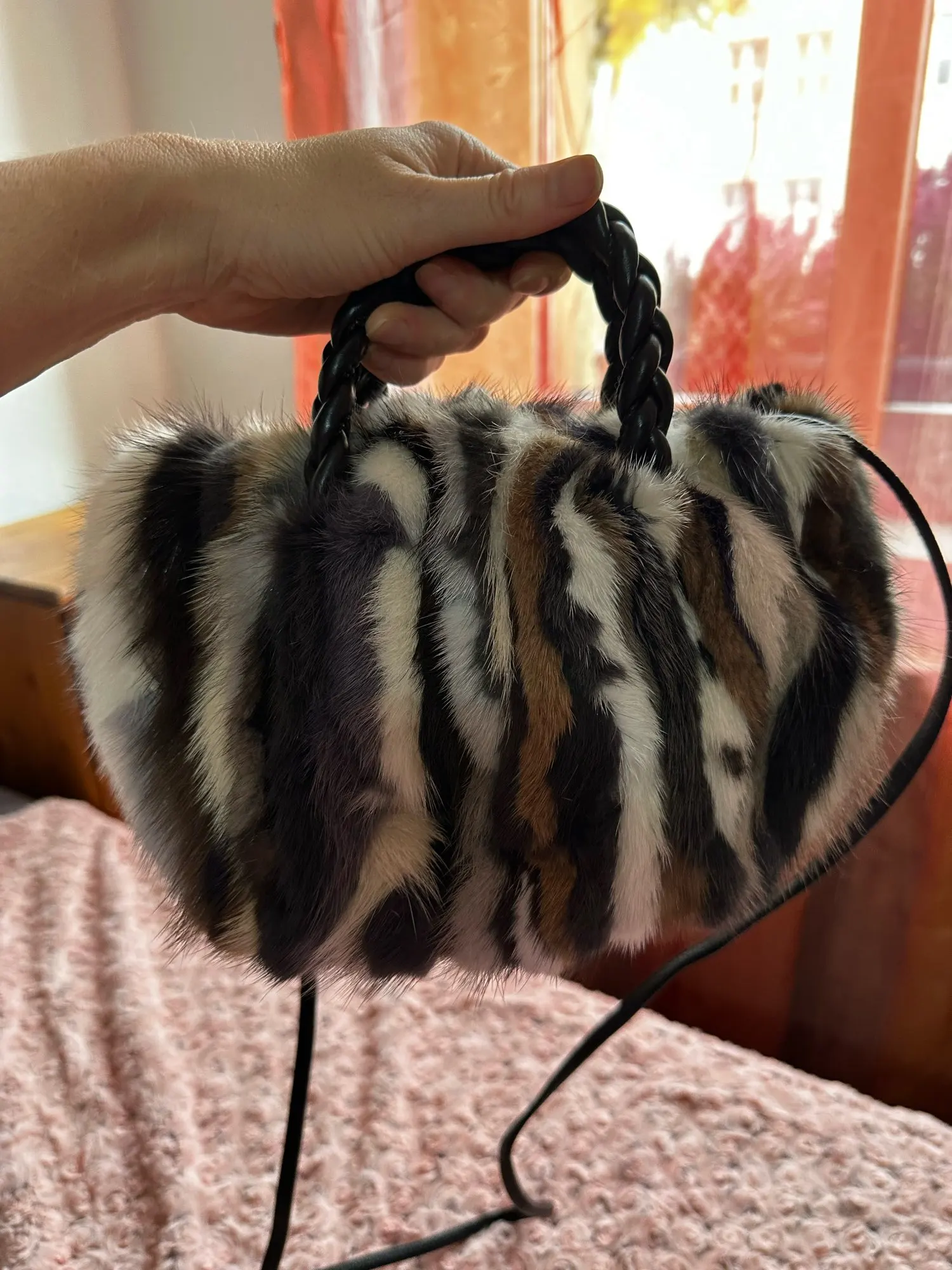The Lysarre Satchel evokes a quiet winter elegance, where natural tonal stripes meet a softened, voluminous silhouette. Its fur surface catches the light with a gentle sheen, creating a tactile rhythm that shifts with every movement. The braided handle adds sculptural dimension, balancing softness with a confident, modern form. Carried by hand or worn effortlessly at the side, the piece brings a refined warmth to seasonal dressing and offers a distinctive signature for women drawn to expressive, textural accessories.