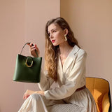 The Thalena Sculpted Bucket is elegance distilled. With its curved edges and firm vertical silhouette, it carries the structure of a sculpture and the softness of touch. Wrapped in smooth genuine leather and crowned with a gleaming gold D-ring accent, it pairs bold simplicity with quiet richness.